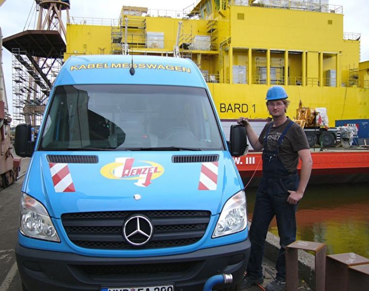 Eine große Herausforderung für das Personal und die Messwagentechnik waren Kabelprüfungen und die Kabelmontage in Klaipeda (Litauen). Wir hatten dort einen siebenwöchigen Einsatz auf der Offshore Umspannplattform BARD 1. Unser Auftrag war, die 30kV Kabelmontage mit anschließender Kabelprüfung durchzuführen.