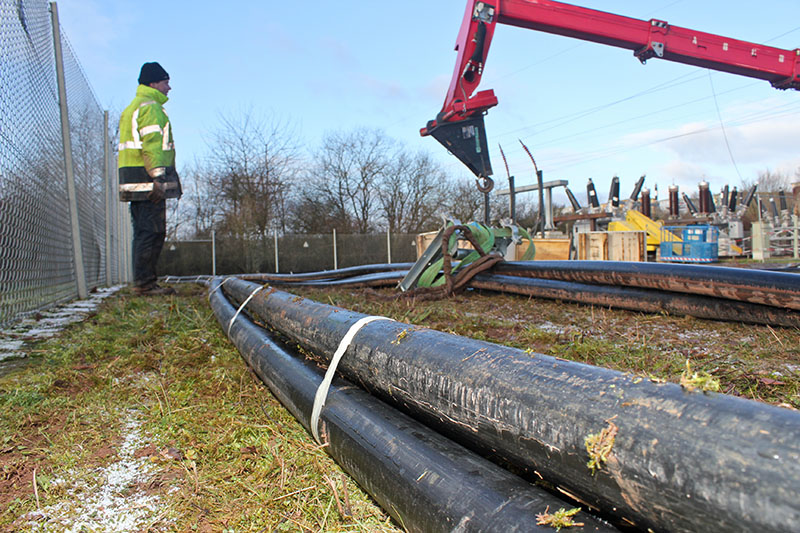Verlegung eines 110kV-Baueinsatzkabels in Süd-Deutschland.